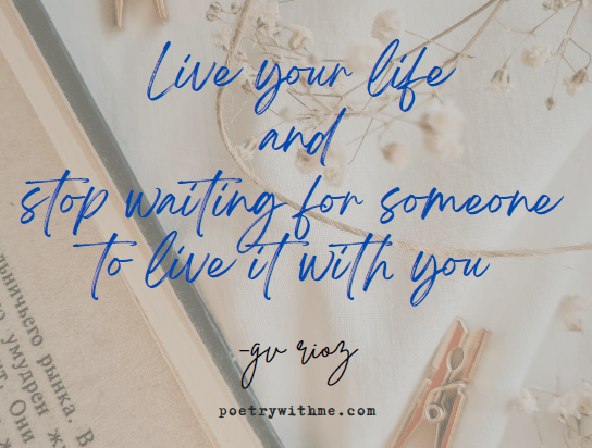 Whether you are waiting on the love of your life to realize you exist or waiting for a promotion or for the rain to stop falling you are wasting valuable precious time you won’t get back.
